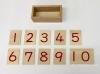 木箱に45本の錘形棒が入っています。0−4、5−9の数字が印刷された木箱は含まれません。棒は45本のうち、30本は良品ですが、15本はキズなどがあります。